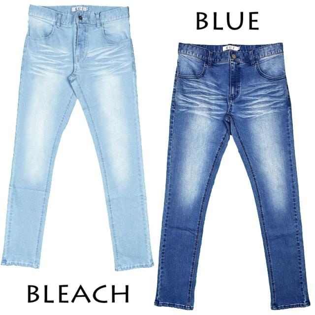 【閉店セール】KUI メンズデニム ストレッチデニム 髭加工ジーンズ 33243 スキニーパンツ スリムパンツ ビンテージ加工デニム ストレッチ 伸縮 テーパード S M L LL 大きいサイズ ホワイト ブラック ブルー インディゴ カジュアル ビター系 BITTER ストリートパンツ