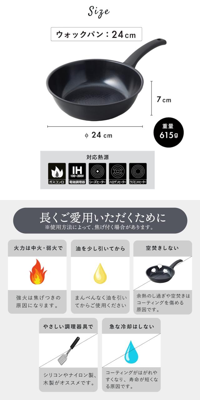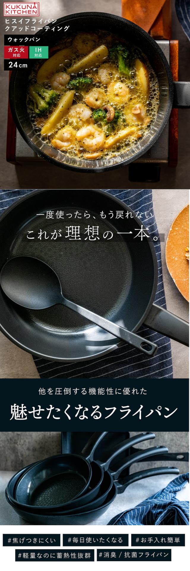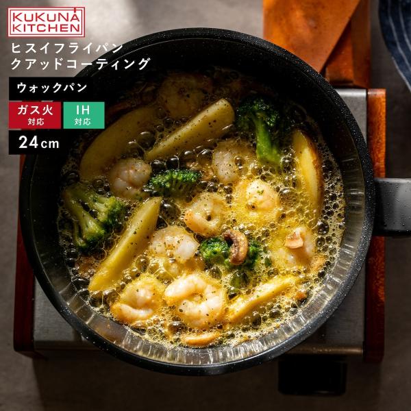 フライパン 24cm ウォックパン マルチパン ヒスイクアットコーティングフライパン ih IH対応 ガス火対応 オール熱源対応 ヒスイコーティング おしゃれ