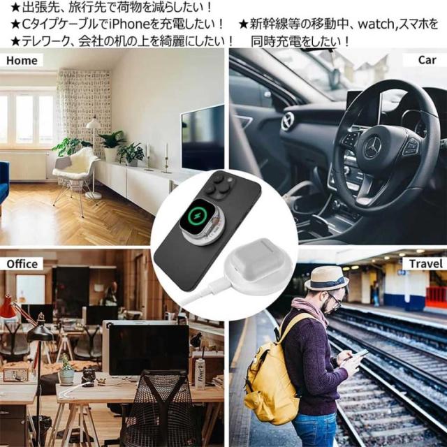 【送料無料】3-in-1 MagSafe ワイヤレス充電器 スタンド マグセーフ 充電器 マグネットiPhone12以降?Apple Watch?Airpodsシリーズ対応