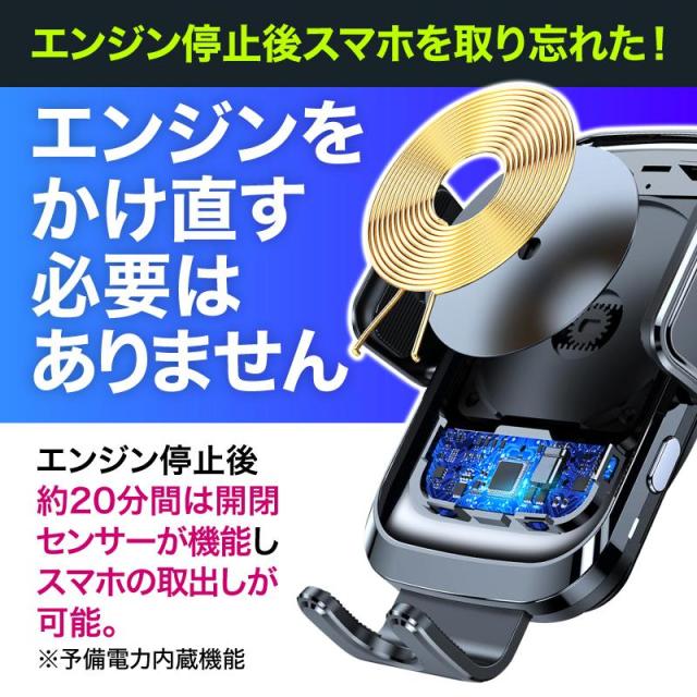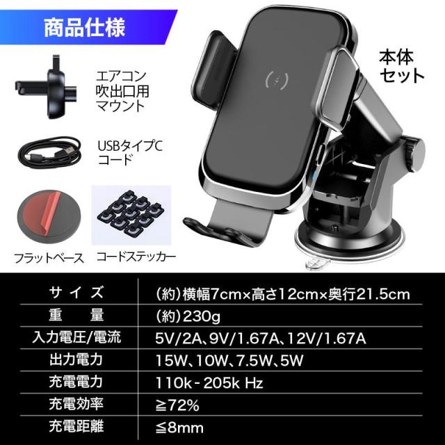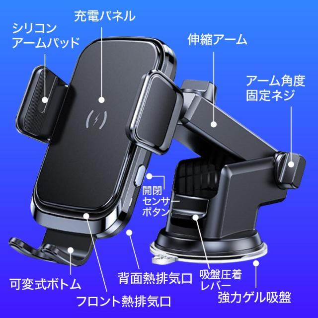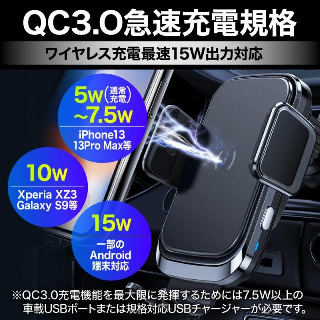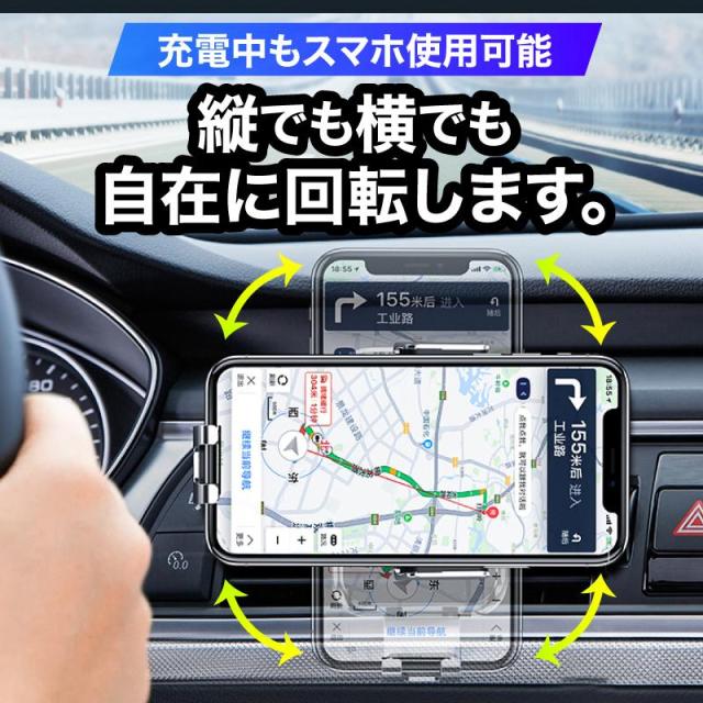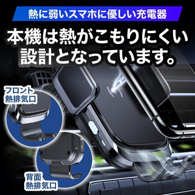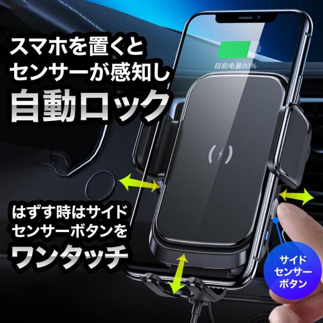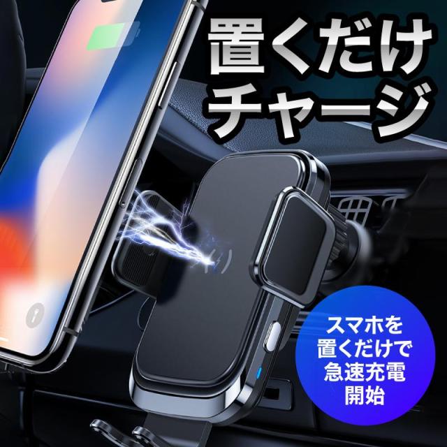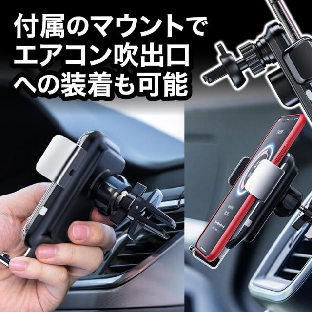 スマホホルダー 車 充電 自動開閉式 吸盤 車載ホルダー Qi エアコン 車載充電器 ワイヤレス充電
