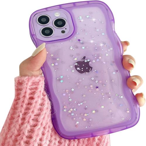 QLTYPRI iPhone 15 Pro 用 ケース クリア TPU カバー ウェーブ おしゃれ 韓国 可愛い グリッター 透明 薄型 軽量 耐衝撃 滑り止め スマホケース ワイヤレス充電対応 ストラップホール付き アイフォン15 Pro 用 ケース 6.1インチ 対応 - パープル