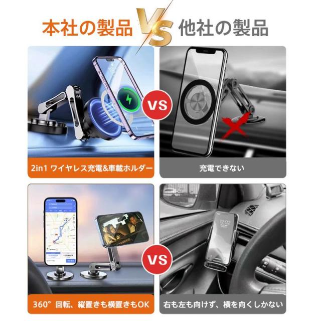 車載ホルダー ワイヤレス充電器 車 スマホホルダー マグネット magsafe 磁石 車載充電器 急速充電 15w 360°回転 携帯スタンド