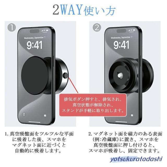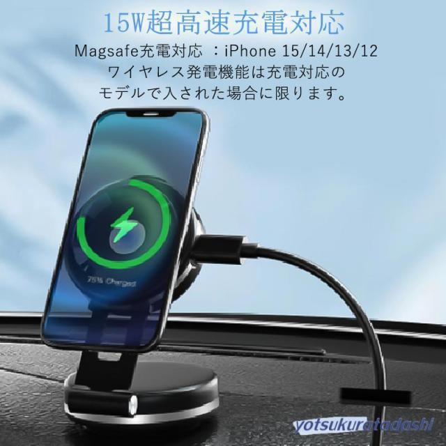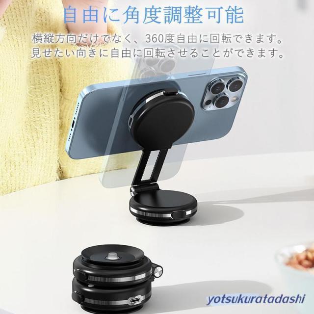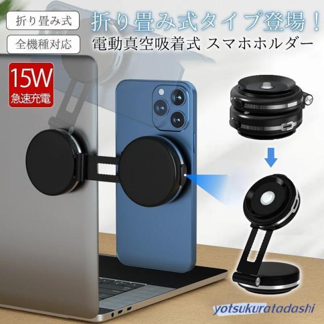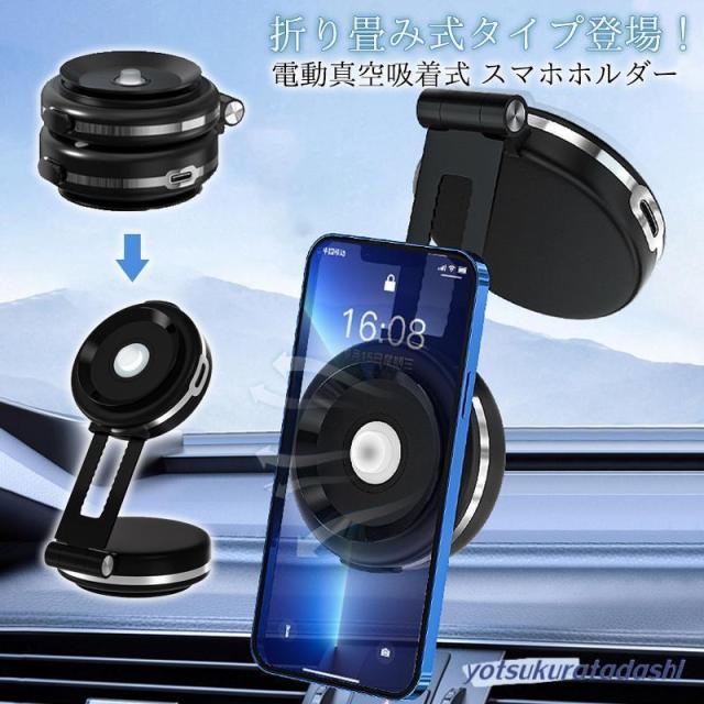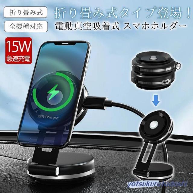 折り畳み式タイプ登場 スマホスタンド 車載ホルダー マグネット式 ワイヤレス充電器 magsafe式 電動真空吸着式 超吸着力 スマホホルダー 安定性抜群 片手操作