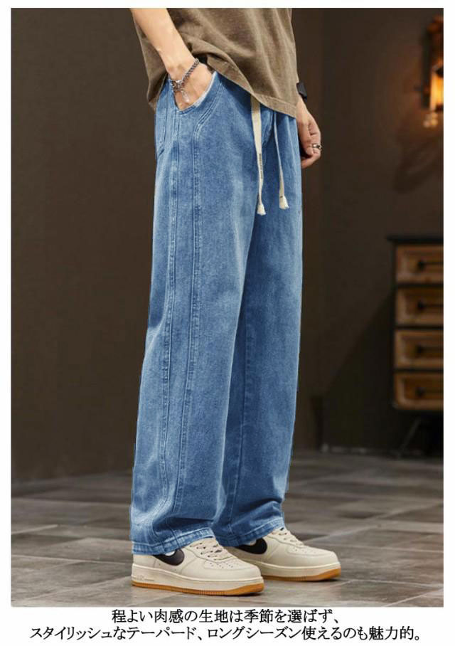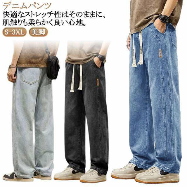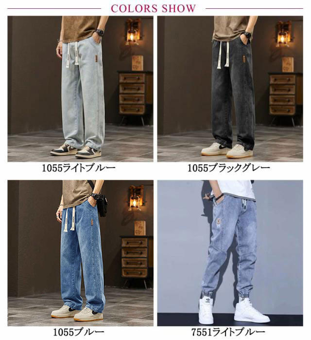 デニム ストレートパンツ ジョガーパンツ デニムパンツ メンズ ジーパン ジーンズ ゆったり カジュアル ウエストゴム ロングパンツ 美脚 脚長 きれいめ ズボン 韓国ファッション スポーツ ゆったり 大きいサイズ 春 夏 秋 春服 秋物 送料無料 S-5XL