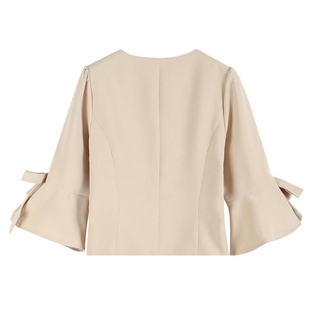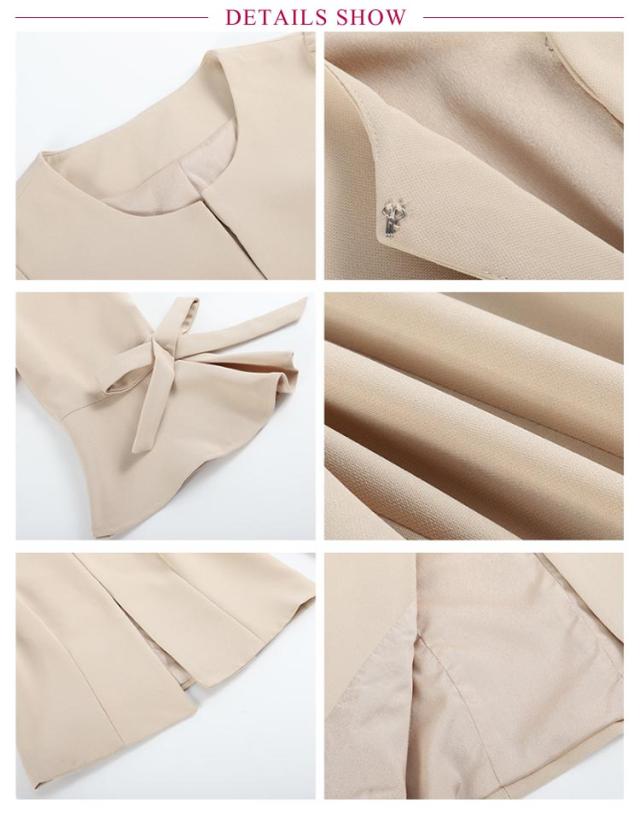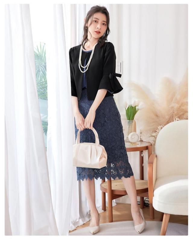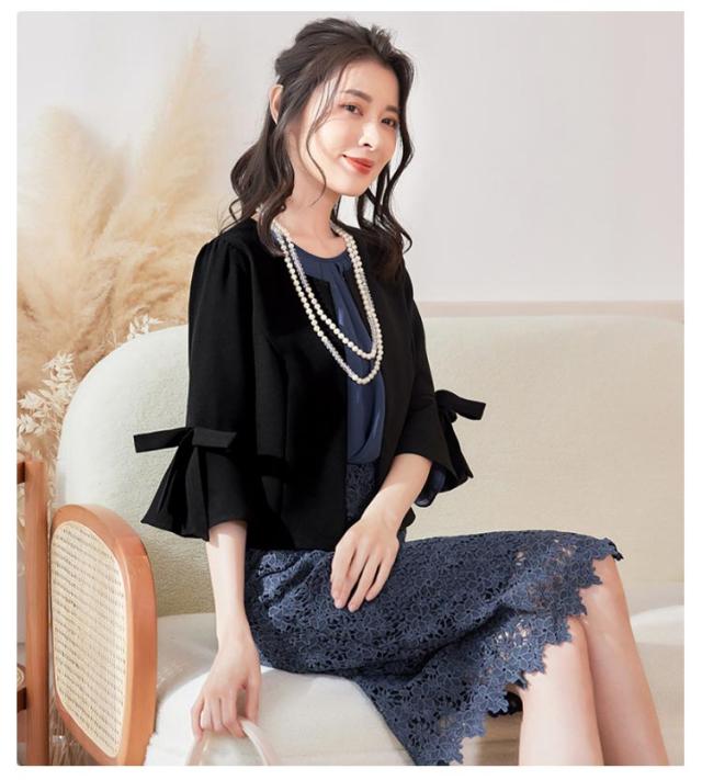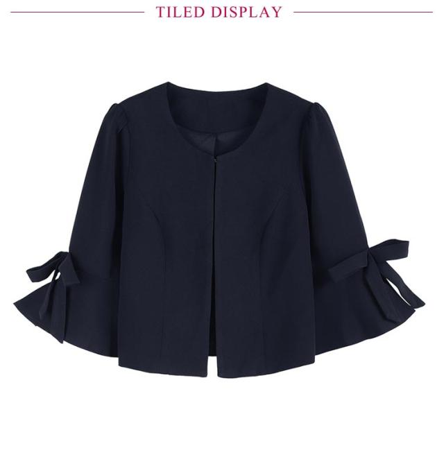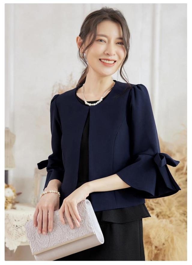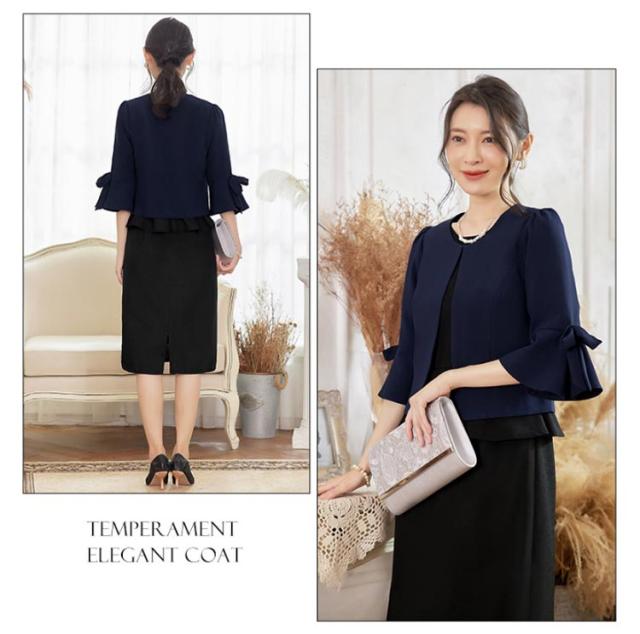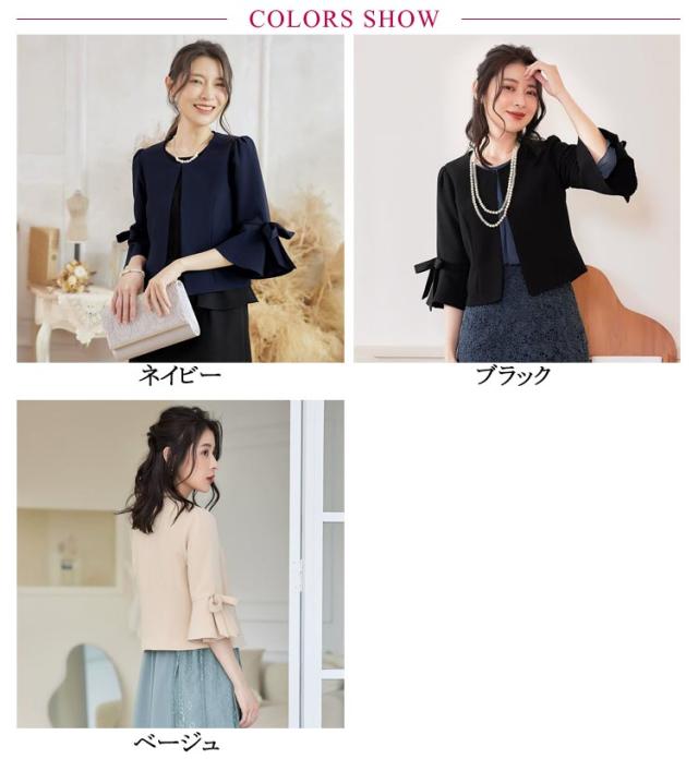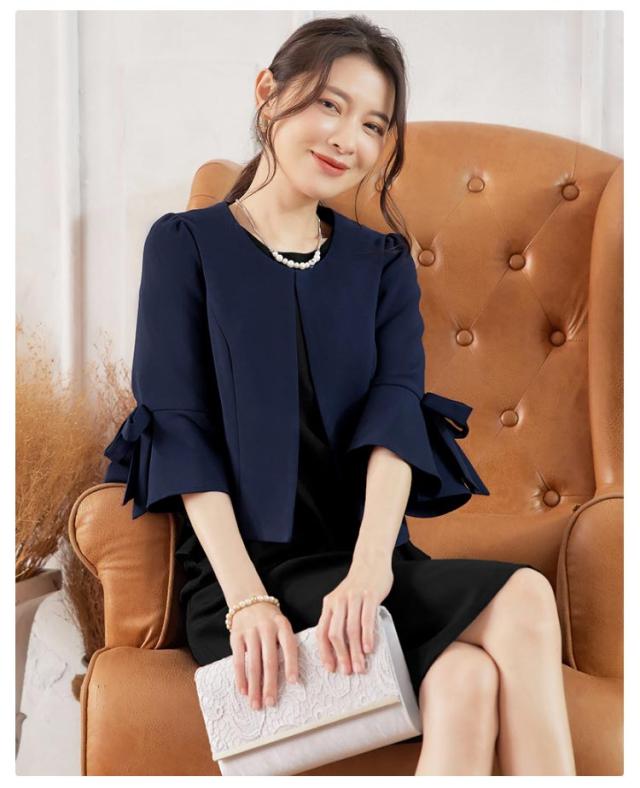 | パーティーからオケージョンまで幅広く着回せるノーカラーボレロ。 ふんわりと広がる袖口のフレアとリボンのデザインが 女性らしい甘さと華やかさを添えてくれます。 裏地のついたしっかりとした 作りで、ジャケットのシルエットを崩しません。パーティーや式典などにもふさわしいきちんと感が出ますよ。 しっかりして、質がよい生地を使用しており、着心地よく動きやすくために仕立てです。柔らかくなめらかな肌触りで、着心地も着回し力も抜群!形態安定加工が施されているので、洗濯時に形が崩れにくいです。 フォーマルシーンならジャケット風がぴったり! 結婚式でスピーチを任された場合やかっちりとしたパーティーシーンには、フォーマル感を出せるジャケット風ボレロがおすすめ。 これは様々なシーンに活躍する!事務、通勤、オフィス、仕事などビジネスシーン、また結婚式、同窓会、参観日、発表会、などにも大活躍で、幅広くお使い頂けます。 シンプルでスタイリッシュなデザインで、オシャレ感が高く、スタイルアップ効果も抜群。エレガントで可愛くて、細身効果も抜群です。大人っぽい綺麗で女性らしいエレガント、女子力の魅力をアピールできます。 | |