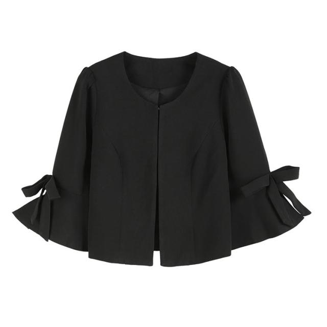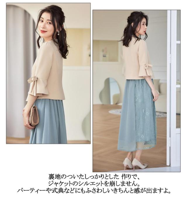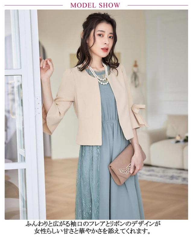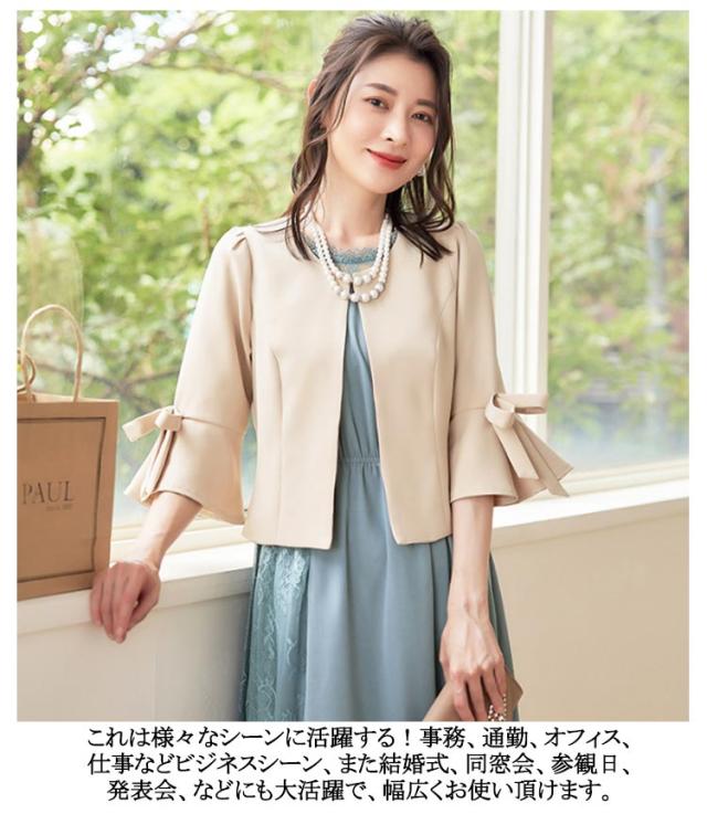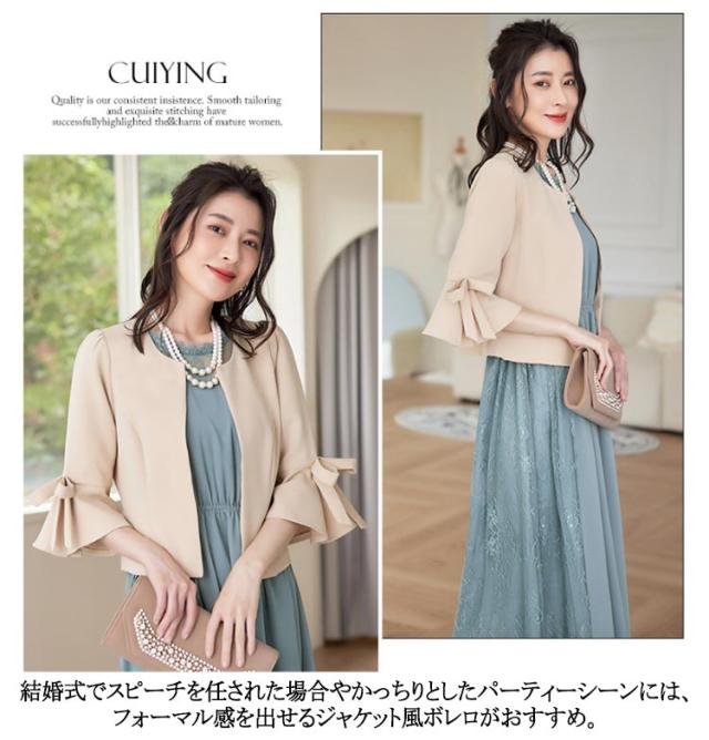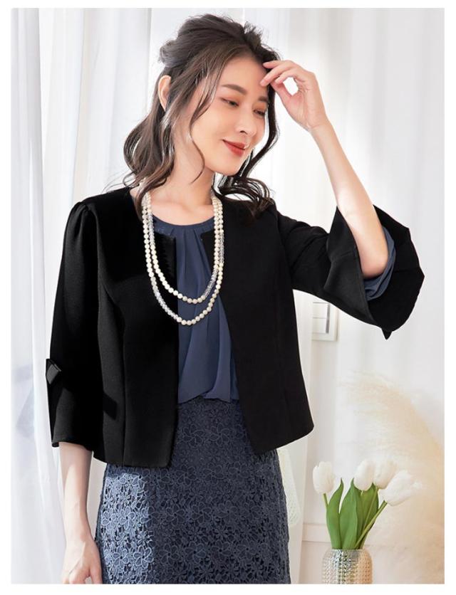 ボレロ パーティーボレロ ジャケット ショートジャケット ノーカラージャケット フォーマルジャケット カーディガン 七分袖 フレア ママスーツ ノーカラー 二の腕カバー 通勤 結婚式 披露宴 二次会 パーティー 式典 入学式 卒業式 きれいめ ビジネス カジュアル 可愛い S-2XL