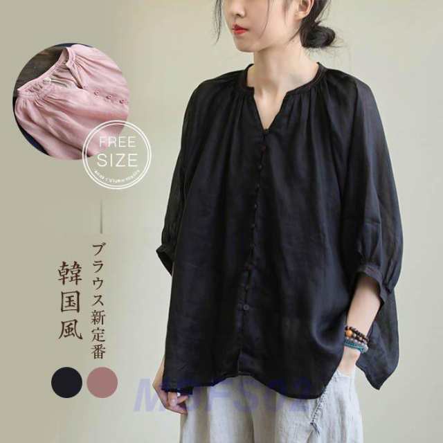 リネンシャツ シャツ レディース 春 ブラウス 長袖 綿麻混 プルオーバー シャツブラウス ロングシャツ 30代 40代 50代 ゆったり 着心地 可愛い