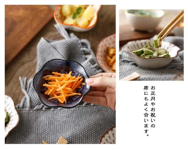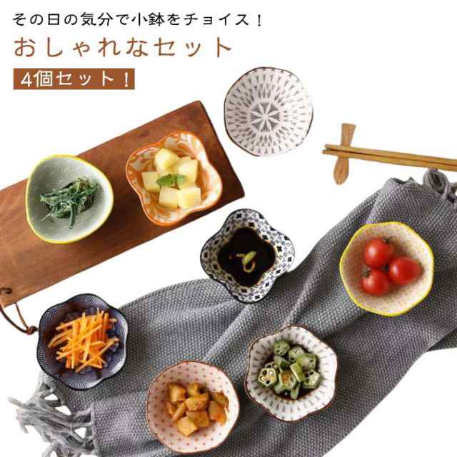 | 4個セット!その日の気分で小鉢をチョイス!おしゃれなセット 小さな器は、形や柄が違っても統一感のある食卓に。 酢のもの、煮豆、ひじきの煮物、なます、お漬物など、副菜の盛り付けにぴったり。 アイスやわらび餅などのデザートを盛り付けてもおしゃれです。 お正月やお祝いの席にもよく合います。 ワンプレートに盛り付けるのもいいですが、 時間があるときは小鉢に違ったお料理をひとつひとつ盛り付けてゆっくり食事をとるのもおすすめです。 同じおかずでも器を変えるだけで違った印象になります。食事を楽しみ美味しくいただけるアイテムとして。 | |