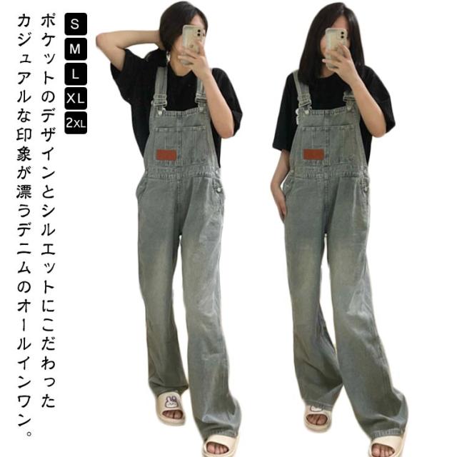 夏 デニム レディース 春 ゆったり サロペット デニムパンツ オーバーオール 冬 デニムサロペット デニムサロペ オールインワン デニムオールインワン 大きいサイズ サロペ つなぎ ワイドパンツ 体型カバー ジーンズ サロペット アメカジ ストリート系