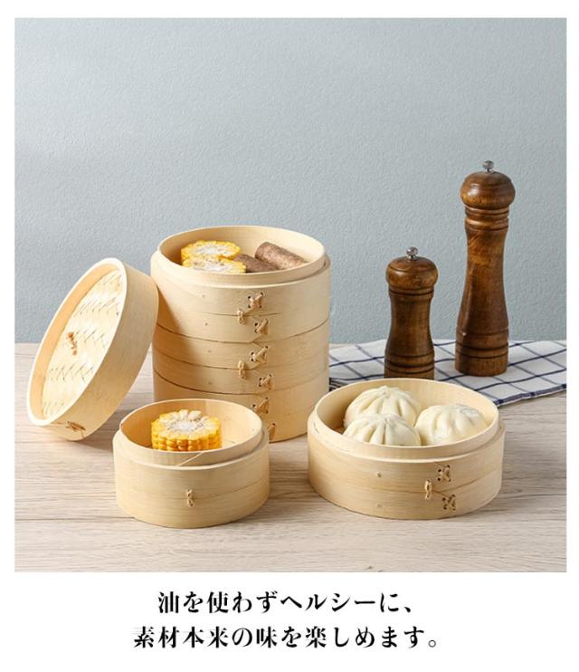 | 竹せいろ 2段 蓋付き 21?26cm 通気性に優れた竹材の蒸篭です。 繊維の密度が高く、食材を蒸す時に水蒸気を吸収するので、蒸篭の内側に水滴がたまりにくくなります。 2段重ねることで、複数のメニューを同時に調理ができます。 油を使わずヘルシーに、素材本来の味を楽しめます。 | |