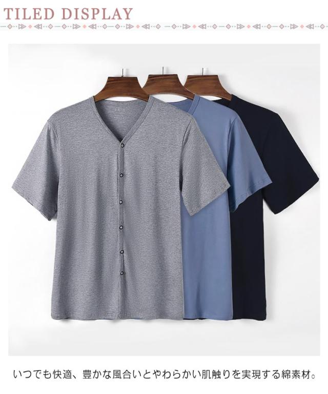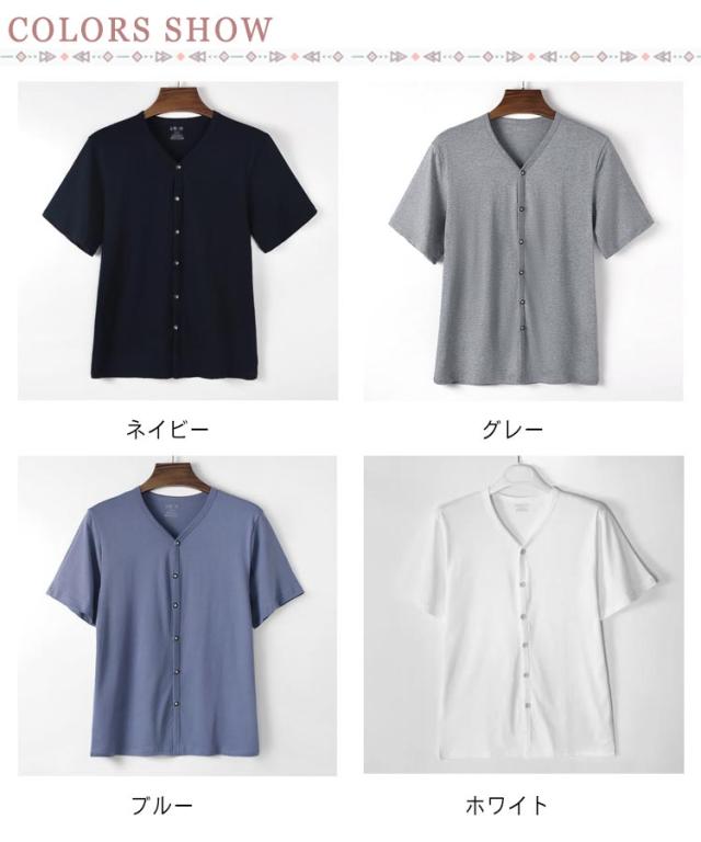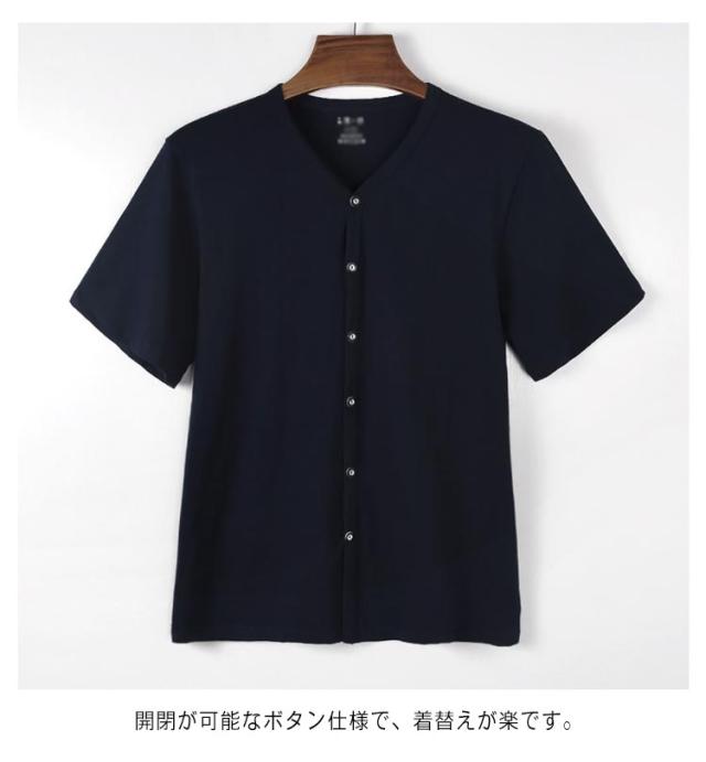 Tシャツ メンズ インナー Vネック アンダーシャツ 白 ルームウェア 前開き 半袖 インナーシャツ 下着 手術 大きいサイズ 白T 肌着 入院 吸汗速乾 男性用 Tシャツ 紳士 黒 綿 無地 定番 シンプル 肌着 介護用 部屋着