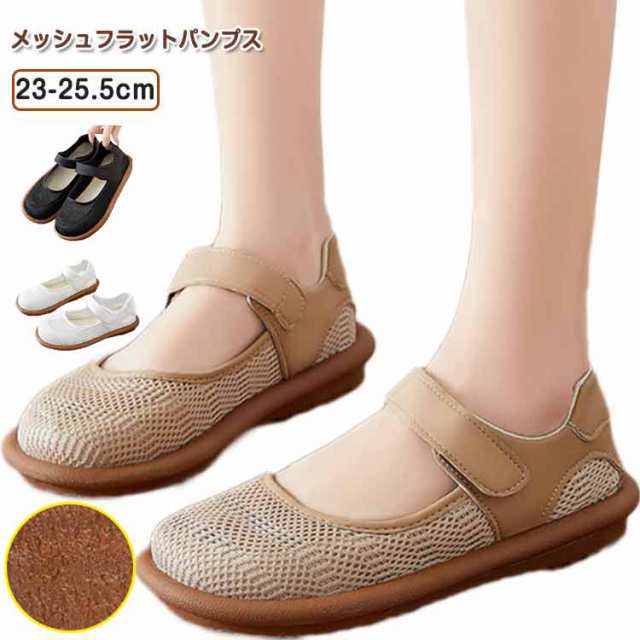 メッシュパンプス 痛くない レディース ラウンドトゥ 外反母趾 メッシュフラットパンプス マジックテープ コンフォートシューズ カジュアル ぺたんこ 涼しい 走れるパンプス ローヒール
