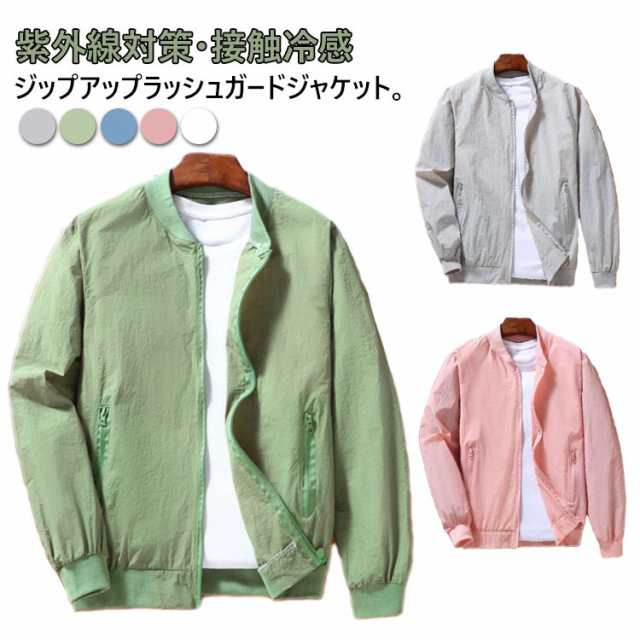 ラッシュガード メンズ 紫外線対策 ブルゾン スタジャン 長袖 UVカット 吸汗速乾 ジャンパー ひんやり 接触冷感 ジャケット ジャケット 夏用 日焼け防止 ラッシュガード 冷房対策 無地 軽量 ジップアップ スタンドカラー