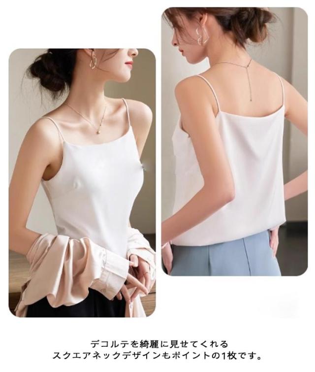 サテンキャミソール スクエアネック サテンキャミソール タンクトップ キャミソール カップ付き ブラキャミ ブラトップ レディース 下着 サテン インナー パッド付き 春 夏 ブラキャミソール 接触冷感 蒸れない 大人可愛い きれいめ フェミニン 光沢感 大きいサイズ 【送無】