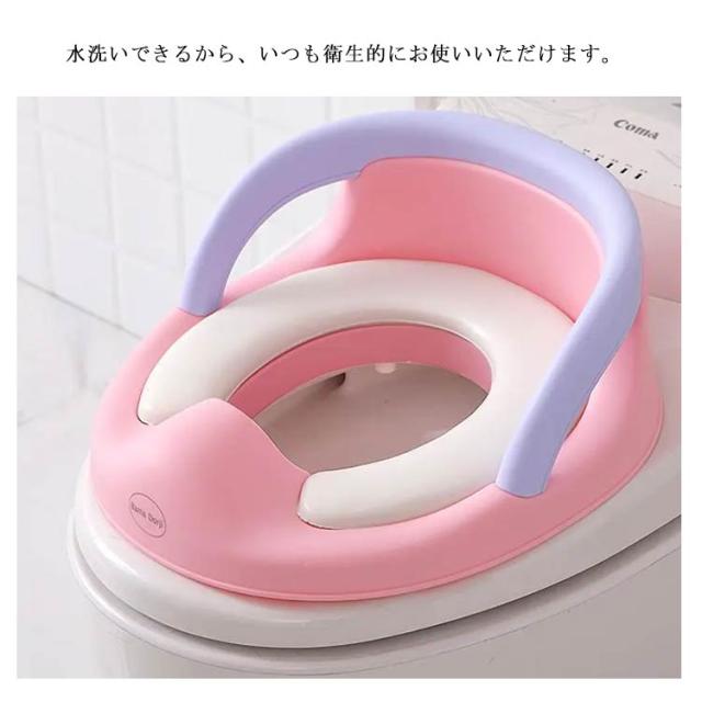 | 柔らかいクッション入り子供のお尻にフィットする補助便座。【6ヶ月?6歳まで使える】 ふわふわクッション入りで固くならず長時間座ってもお尻が痛くない快適な座り心地◎ 便座の上に乗せるだけ使えるから、とても便利。 底面に三面ストッパー付きで、ずれない安定感抜群!お子さまの転倒防止・落下防止にお役立ち。 O型・U型・V型など様々な便座にセットできます。 水洗いできるから、いつも衛生的にお使いいただけます。 壁掛け穴付ききで、使わないと時は場所を取らず、コンパクトに収納できるのも嬉しいポイント。 | |