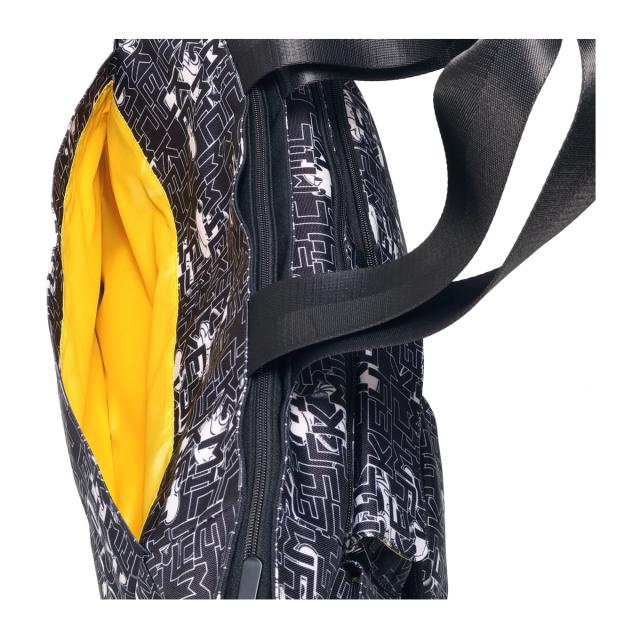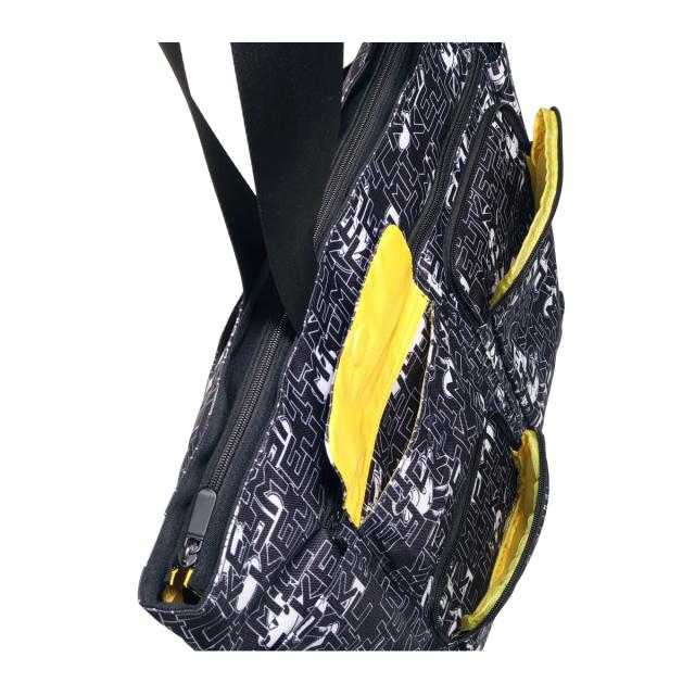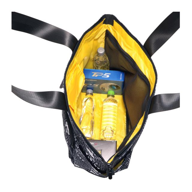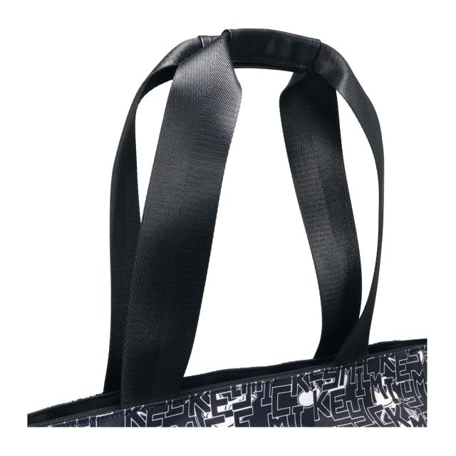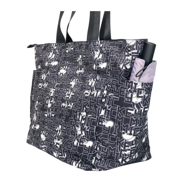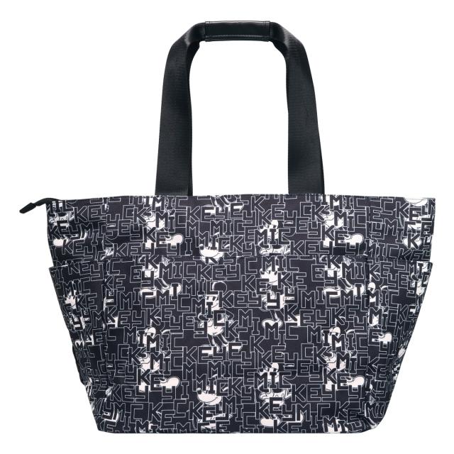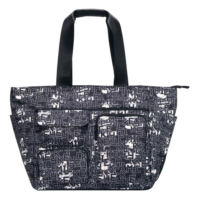 ミッキーとロゴをモノトーンカラーでアレンジしたゴルフトートです。間口が大きく、荷物の出し入れがしやすい設計です。内側と外側に多数のポケットがあり、収納力に優れています(外側7ポケット、内側2ポケット)。ハンドル上部は合皮巻きで、持ち運びの際の重さを軽減します。