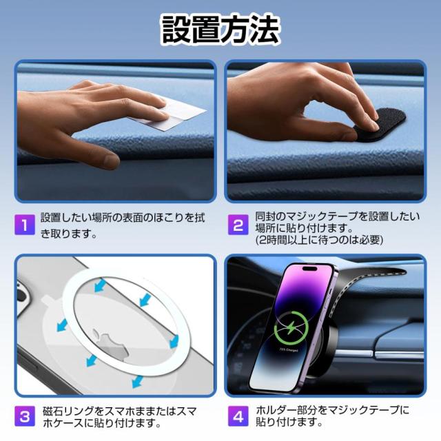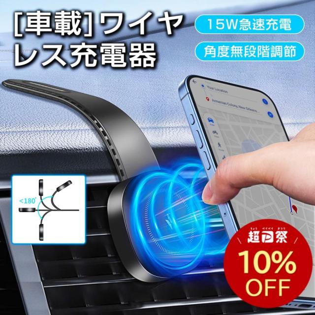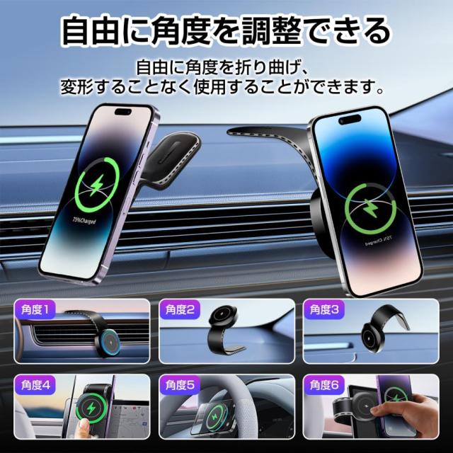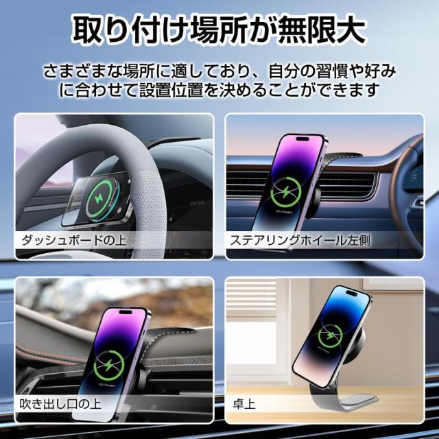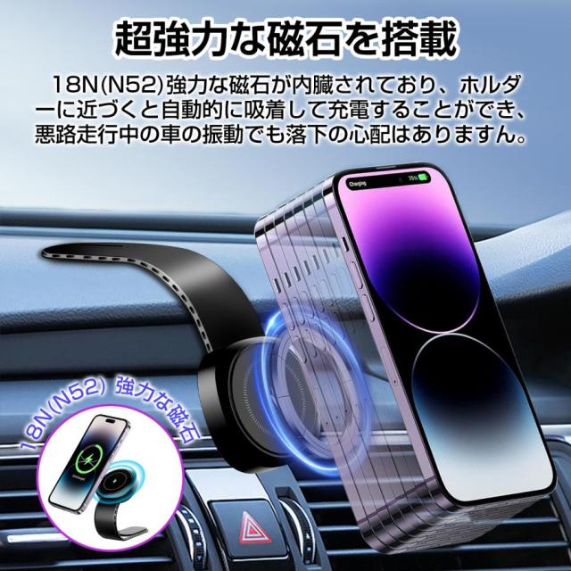 車載ホルダー ワイヤレス充電器 iphone16 スマホホルダー 超強力 Magsafe スマホ充電器 急速充電 スマホスタンド マグネット 片手操作 取り付け簡単 全車種対応