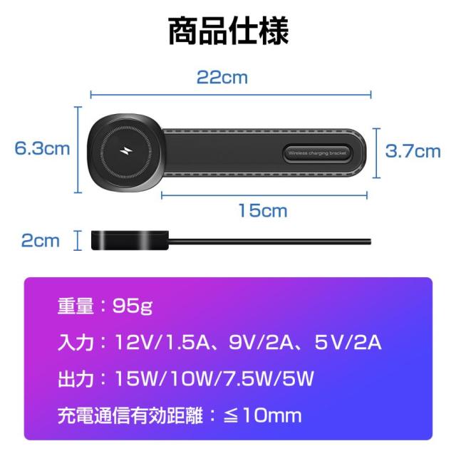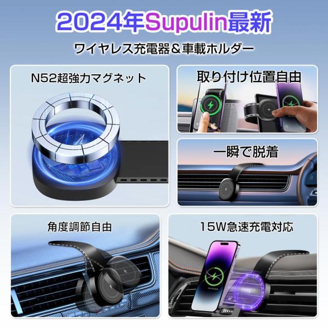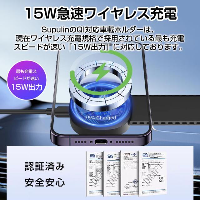 車載ホルダー ワイヤレス充電器 一秒着脱 超強力 Magsafe スマホ充電器 最大15W出力 急速充電