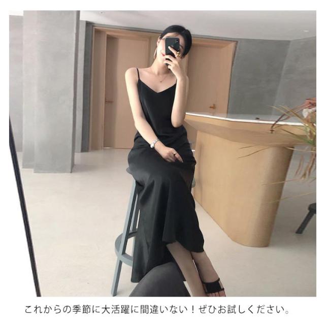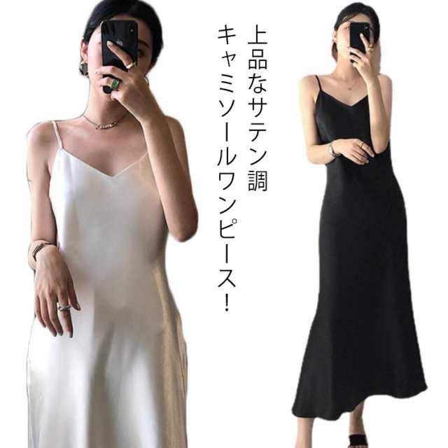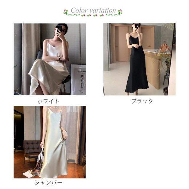 シルクタッチ キャミソールワンピース ロング丈 スリップ インナー ドレス vネック とろみ ルームウェア 部屋着 大きいサイズ セクシー おしゃれ 上品 かわいい 大人 可愛い ゆったり 無地 ホワイト シャンパー ブラック