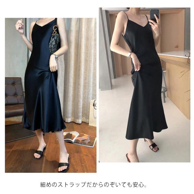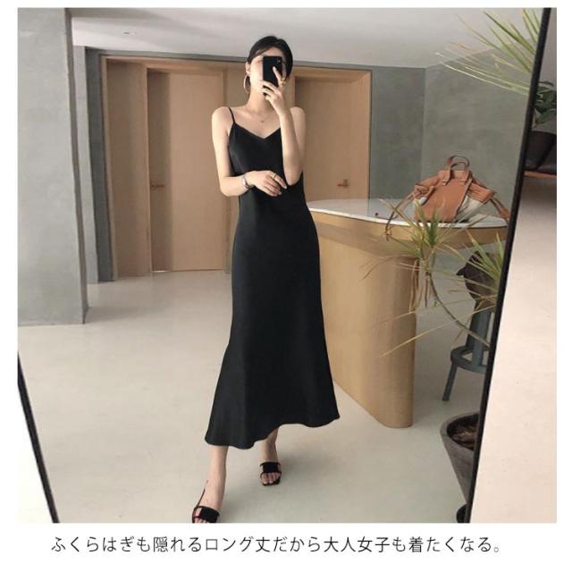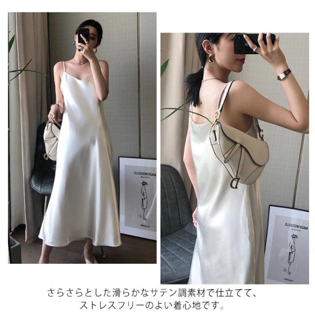 | 上品なサテン調キャミソールワンピース! さらさらとした滑らかなサテン調素材で仕立てて、ストレスフリーのよい着心地です。 ふくらはぎも隠れるロング丈だから大人女子も着たくなる。 細めのストラップだからのぞいても安心。 部屋着としてはもちろん、カーディガンを羽織れば近所のお出かけにもぴったりです! これからの季節に大活躍に間違いない!ぜひお試しください。 | |