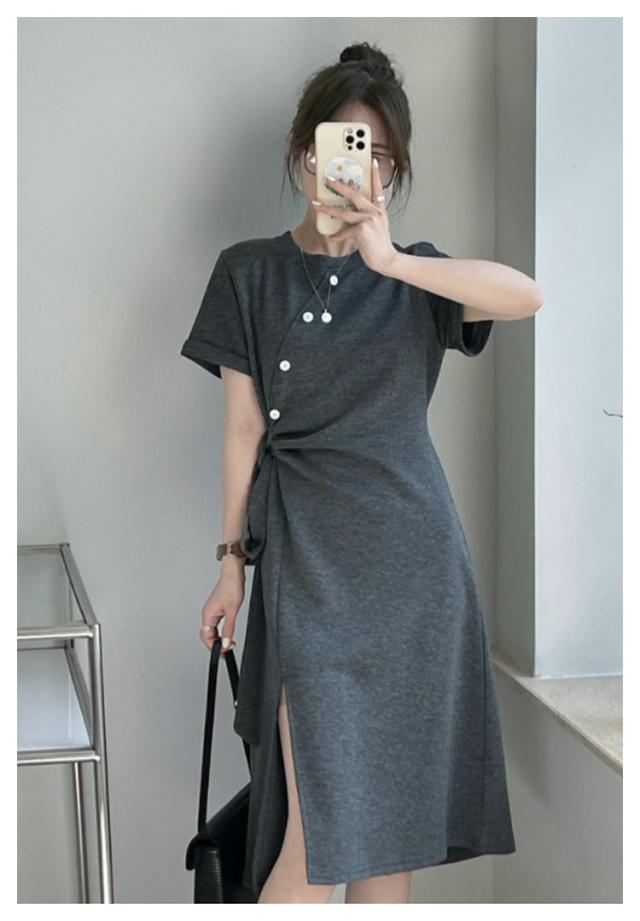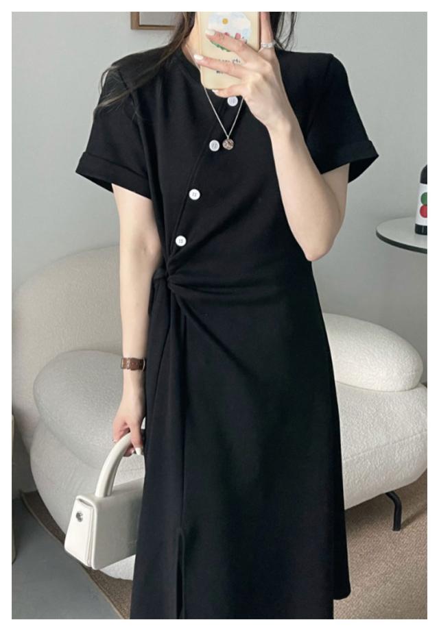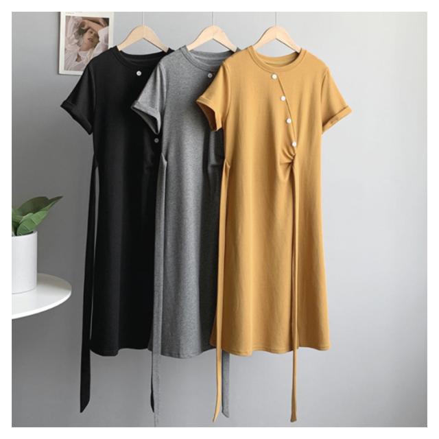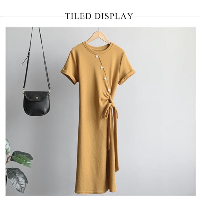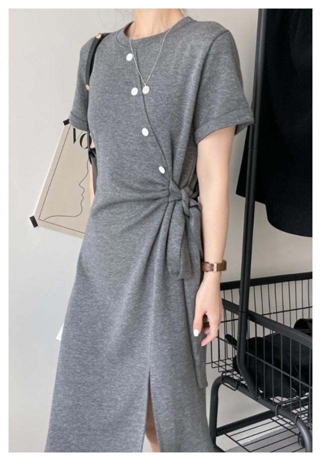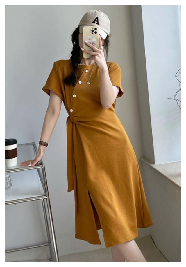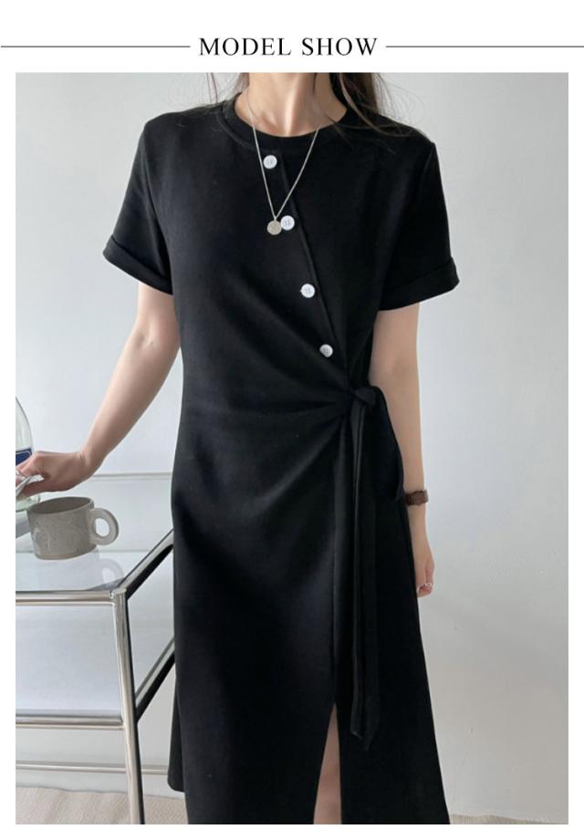 送料無料 ロングワンピース 半袖 ワンピース レディース Tシャツワンピース ミモレワンピース スリット入り ミモレ丈 無地 Aライン 着痩せ ウエストリボン 春夏 ハイウエスト カジュアル 可愛い おしゃれ 通勤 OL お出かけ