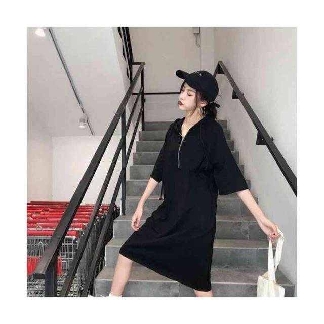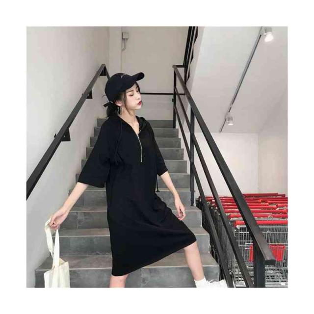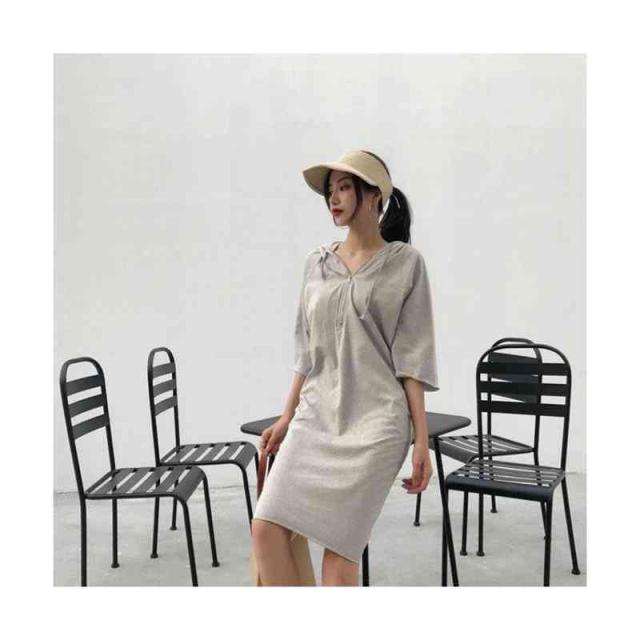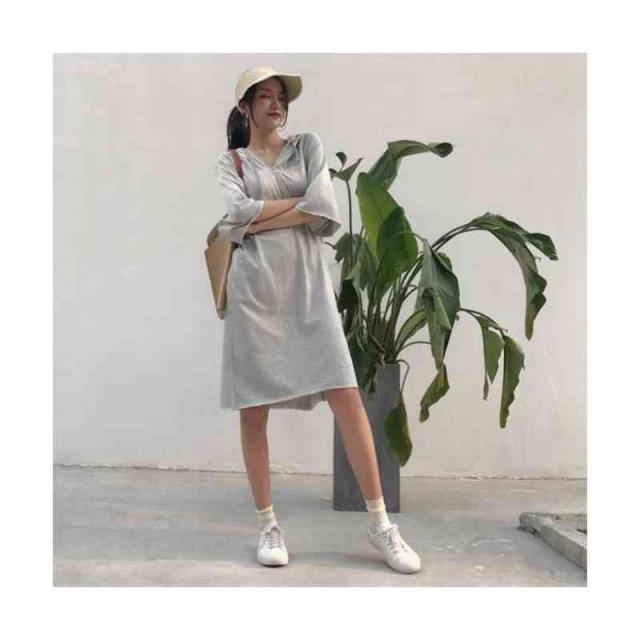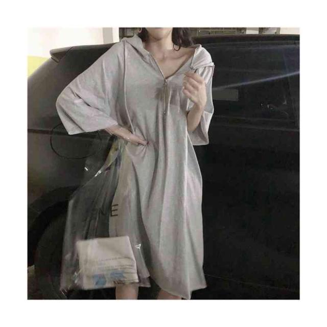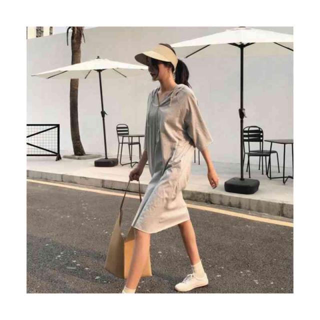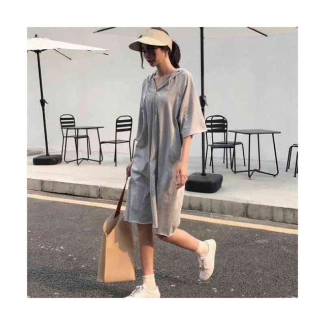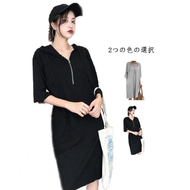 ワンピース レディース パーカーワンピース 半袖 ロングワンピース フード付き スウェット 膝丈 体型カバー 大きいサイズ 送料無料 パーカーワンピース 半袖フード付きワンピース 春夏 カジュアル おしゃれ トレーナー 普段着