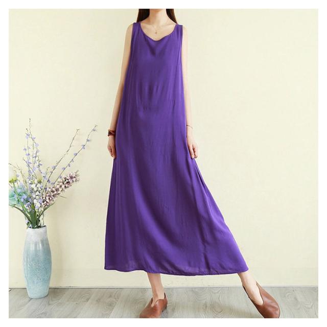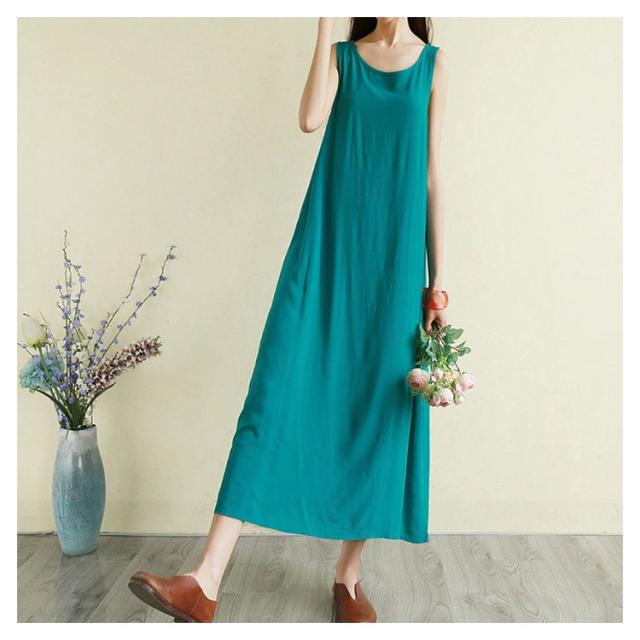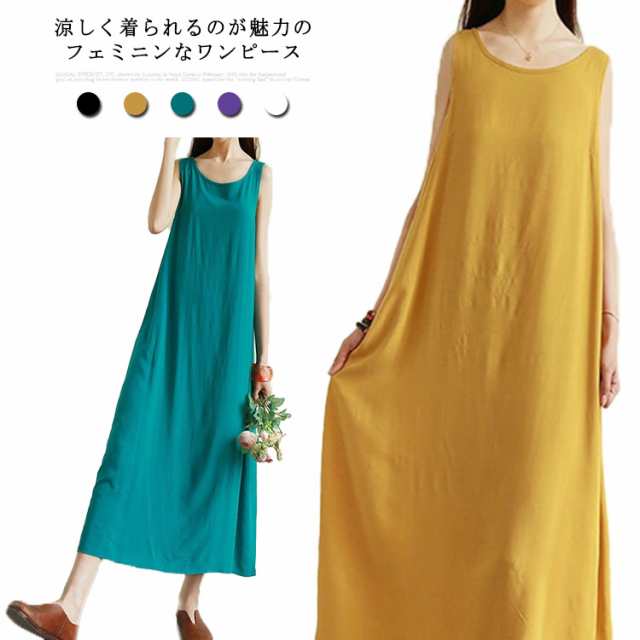 ノースリーブ ワンピース 無地 春 夏 マキシワンピース きれいめ ゆったり 袖なし リネン風 大きいサイズ ロングワンピース カジュアル ナチュラル 体型カバー おしゃれ 涼しい ファッション 秋 シンプル 送料無料