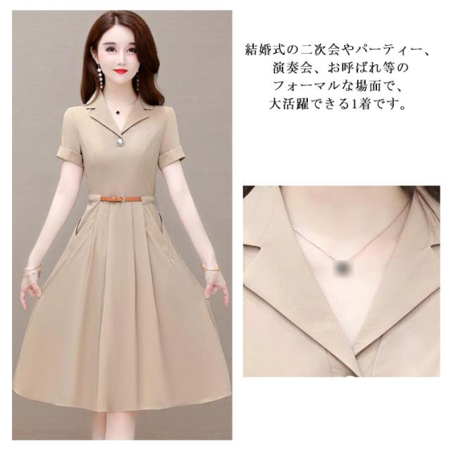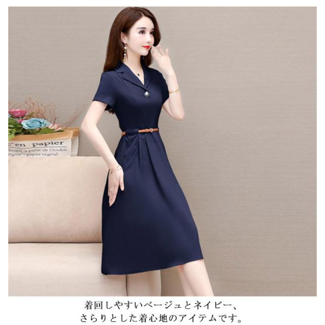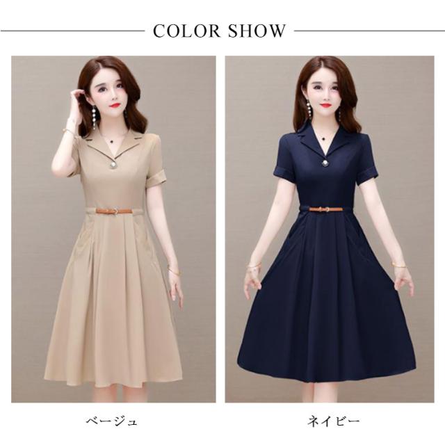 | きれいめな印象を与えてくれるVネックデザインと、上品な大人女性を感じさせてくれるフォーマルワンピースです。 ウエストベルトで、きれいな腰ラインを演出します。 結婚式の二次会やパーティー、演奏会、お呼ばれ等のフォーマルな場面で、大活躍できる1着です。 春、夏には1枚でコーディネートが完成します。 着回しやすいベージュとネイビー、さらりとした着心地のアイテムです。 | |