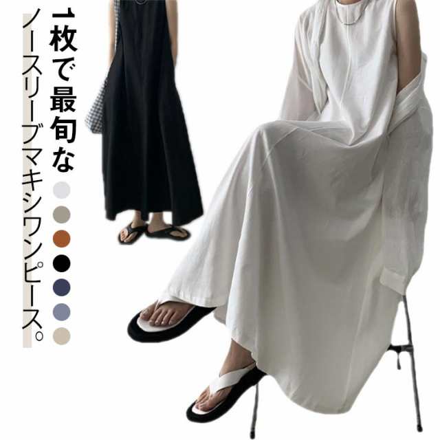 ノースリーブ ワンピース マキシ丈 レディース 春 夏 綿ワンピース マキシワンピース ノースリーブワンピース サマーワンピース ロング丈 ナチュラル ゆったり 可愛い コットン 体型カバー 送料無料