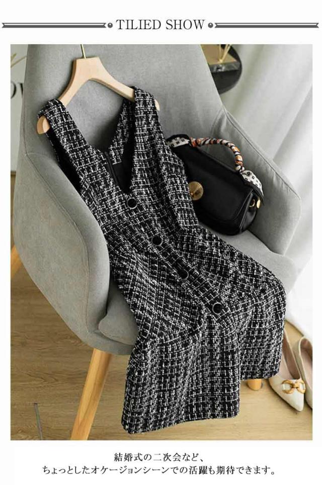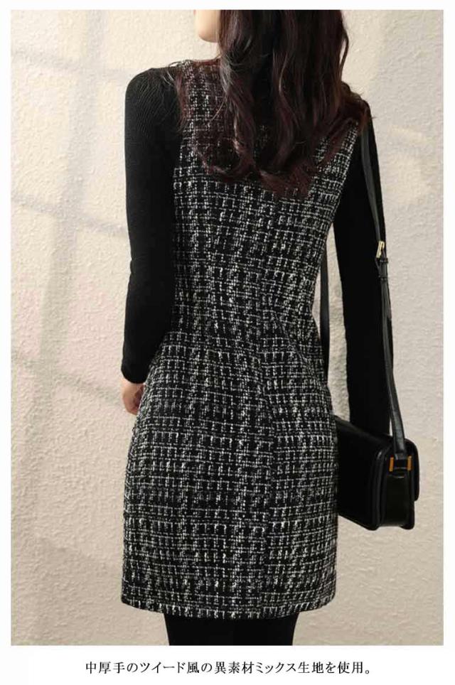 ジャンパースカート ツイード レディース 50代 大人 ジャンスカ ワンピース 深Vネック ノースリーブ ショート丈 膝上丈 きれいめ 厚手 秋 冬 重ね着 レイヤード コーデ スリムフィット 細身 通勤 オフィス チェック柄 おしゃれ 大きいサイズ 【送料無料】