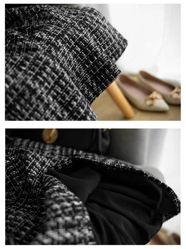 | 秋から冬まで、レイヤードを楽しむ大人のジャンスカ。 ウエスト位置を高めに設定しているためスタイルアップします。身体のラインに沿った美しいシルエットを表現しております。 中厚手のツイード風の異素材ミックス生地を使用。 カットソーを添えたりハイネックニットを合わせて、様々なレイヤードスタイルをお楽しみください。 ミディ丈なので小柄な方にもおすすめです。 結婚式の二次会など、ちょっとしたオケージョンシーンでの活躍も期待できます。 | |