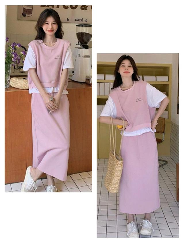 | スウェット素材の半袖トップス&ロングスカートのセットアップ。 トップスのレイヤード風デザインがこなれた雰囲気を演出。 着心地抜群の柔らかい素材で、ラフに着られて、美シルエットも実現! この1セットでコーディネートが簡単に決まる嬉しいアイテム♪ セットでもセパレートでも使えるので、幅広いコーディネートを楽しんでみてはいかがでしょう♪ | |