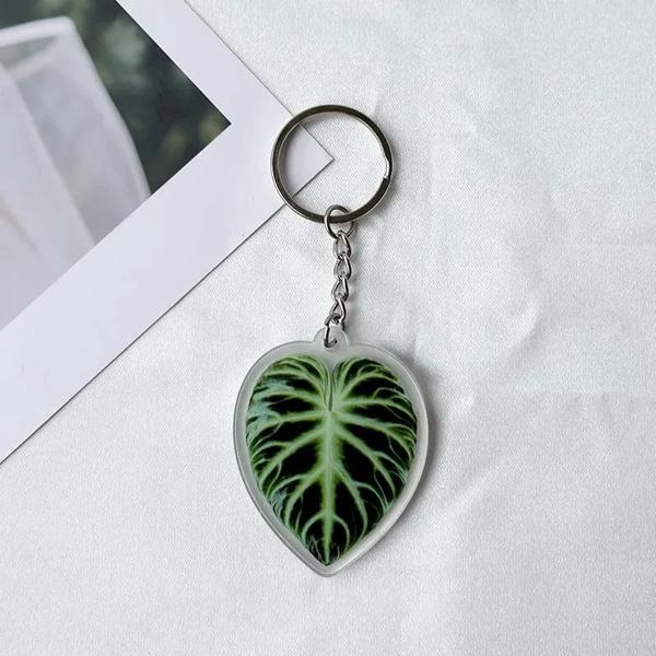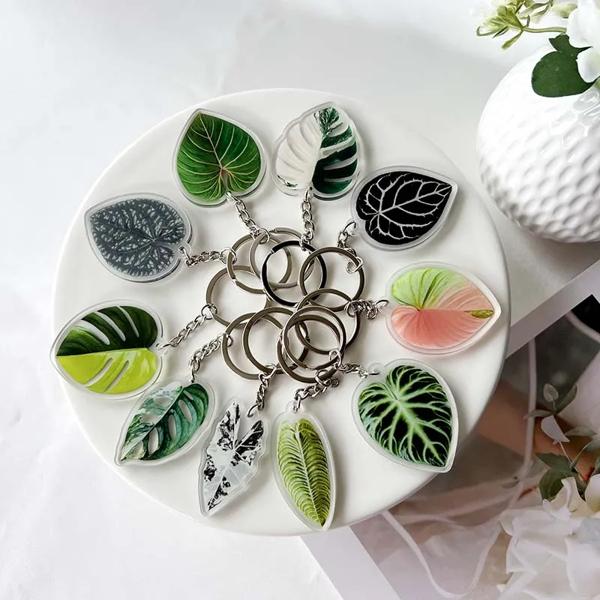 アクリルシミュレーショングリーンプラントキーリング、素敵なキーホルダー、リーフペンダント、小さなギフト、女性のバッグペンダント、素敵なファッション