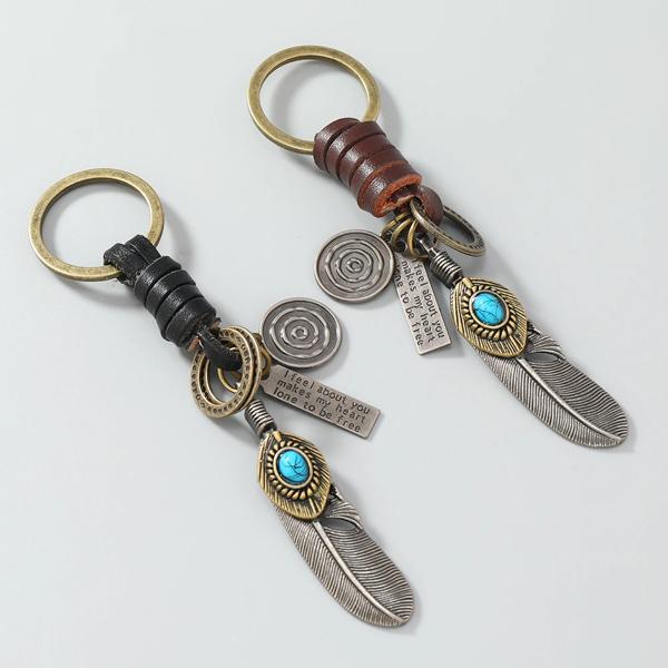 男性と女性のためのファッションキーホルダー、ペンダント、フェザー