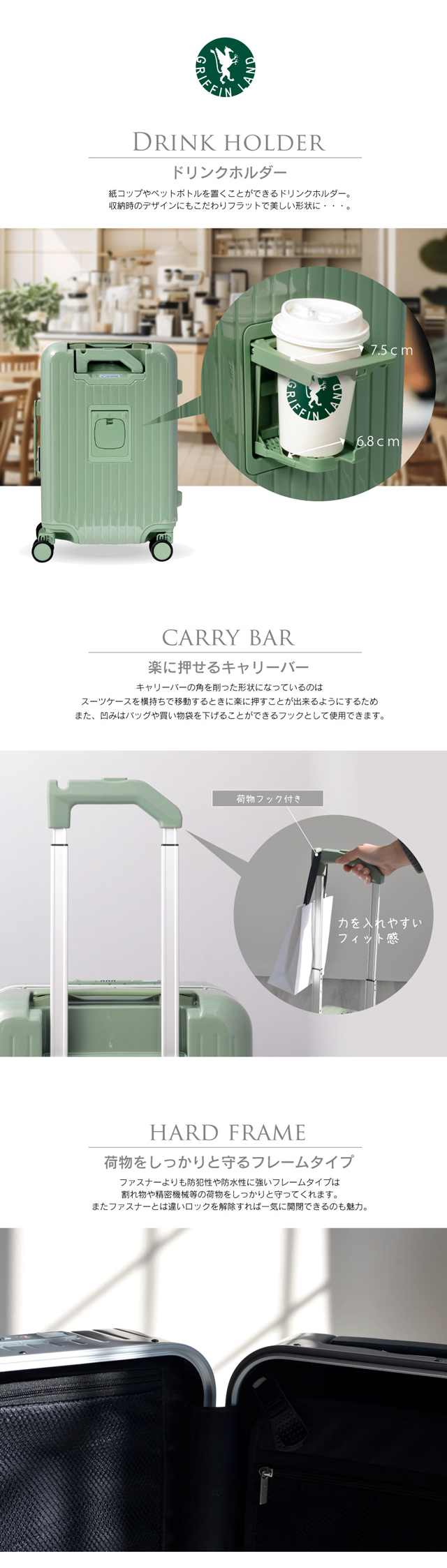 《グリフィンランド》 スーツケース Sサイズ キャリーケース キャリーバッグ NZ-2888 S フレームタイプ 軽量 海外 国内 旅行 おすすめ かわいい 女子旅 静音キャスター フロントオープン