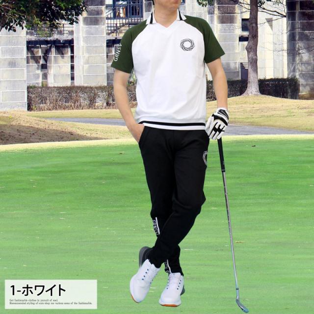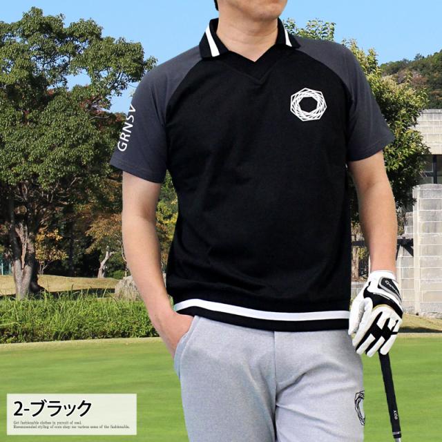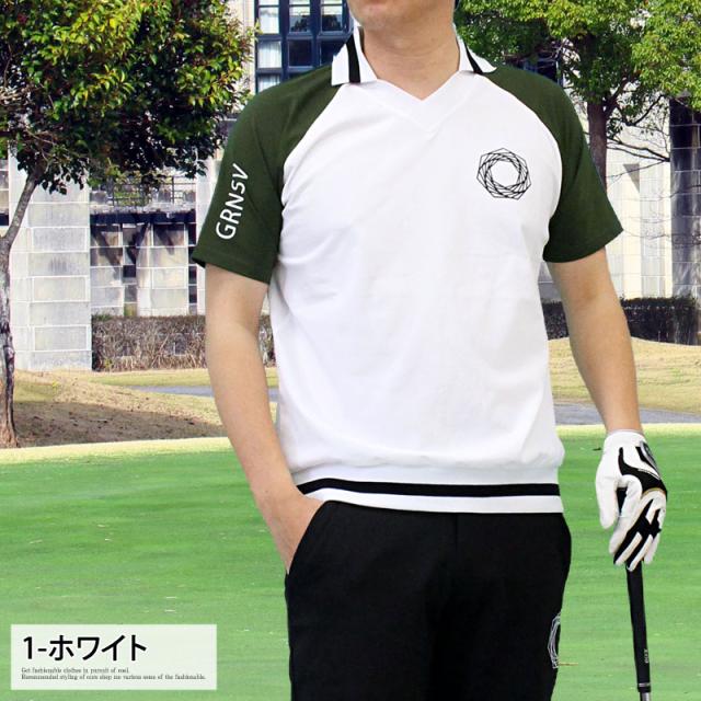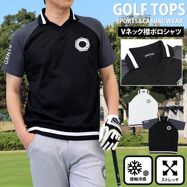 M~3XL 春夏 新作 ゴルフウェア Vネック襟 ポロシャツ メンズ GIORNO SEVEN ジョルノセブン ゴルフ 接触冷感 ストレッチ 半袖 ライン切替 送料無料 ゆうパケ