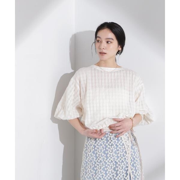 ・トレンド感のあるシアー素材で仕立てたギンガムチェックブラウス