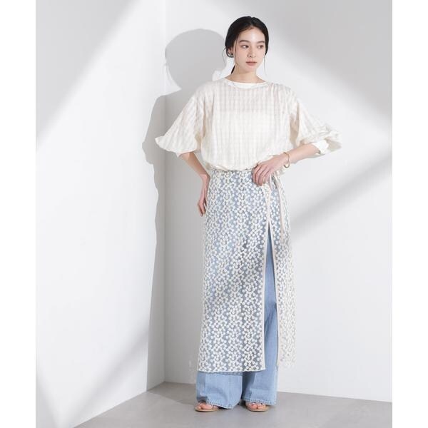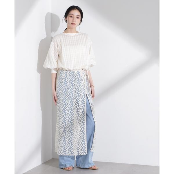 ・6695130317 シアーチェックレースボーダーマキシスカート