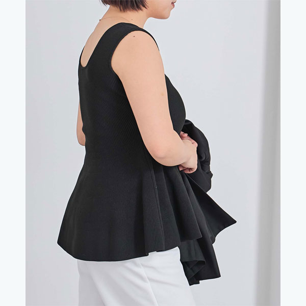 構築的なシルエットでレディライクなペプラムニット。