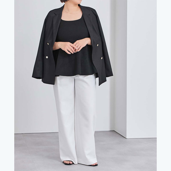 ウエストから裾にかけて広がるペプラムシルエットに仕上げており