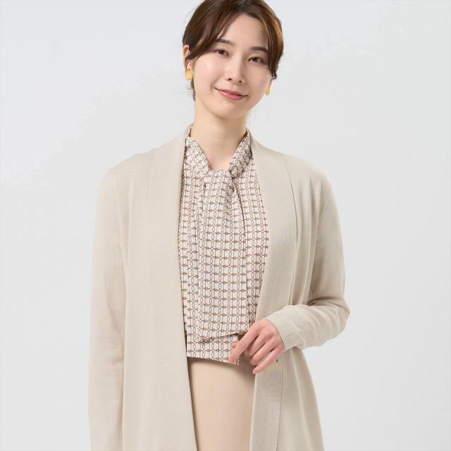 ドライタッチで軽量感ある素材のトッパーカーディガンは、さらっと羽織れて持ち運びも◎です。