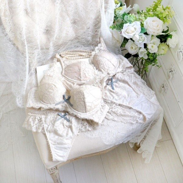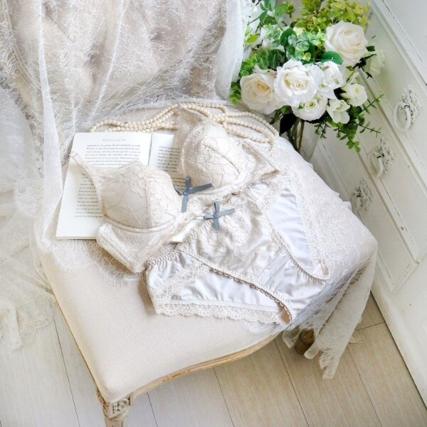レースは一見シンプルながらも、お花やドット、チェーン柄をミックスして奥行き感をプラス。リボンはレースのカラーとは異なる配色にして、アウターライクなスタイルを演出しています。ベーシックなデザインの中にもこだわりを詰め込んだ、日常を少し特別にしてくれるコレクションです。