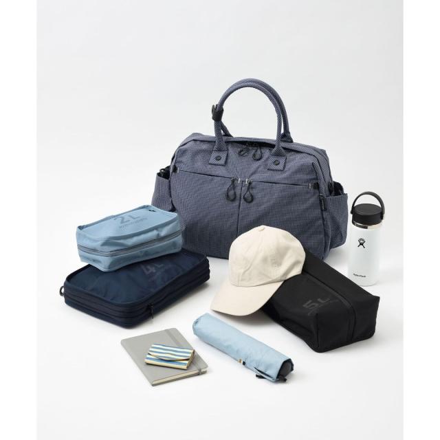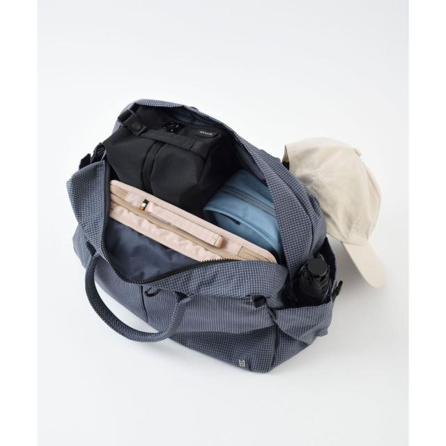 ミニマルデザイン×多機能 旅支度の心をくすぐるダッフルバッグ − 収納力・軽さ・耐水性に優れたミニマルデザインのダッフルバッグ。軽量でありながら強靭なエンジニアリング繊維「SPECTRA(R)」を織り込んだCORDURA(R)ナイロンを使用し、耐引き裂き強度を高め、防犯性を追求。表面には撥水加工、裏面にはPU加工を施し、生地の特性をさらに向上させています。スキミング防止生地を使用したファスナーポケットやキーリングを備え、海外旅行でも安心。ワイドオープンで荷物の出し入れがしやすく、ファスナーメッシュポケットと2つの小分けポケットですっきり収納上手。外装には仕分けに便利な2つのフロントポケット、ペットボトルや傘を収納できる両サイドのポケット、キャリーオンにも対応する背面のファスナーポケットを搭載し、ミニマルなデザインとは裏腹に使い勝手を考え抜かれたポケットの配置が魅力です。