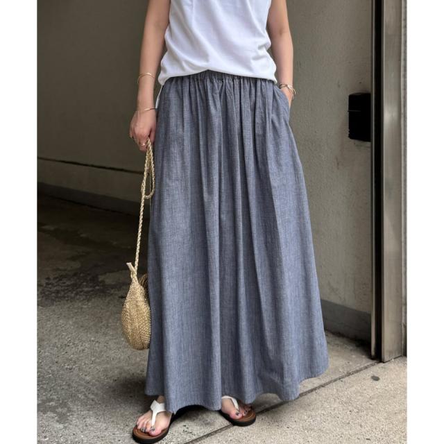 コットンシャンブレーギャザースカート