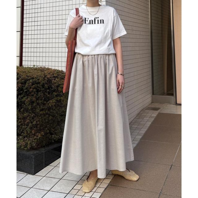 コットンシャンブレーパンツシリーズと同素材のギャザースカート。