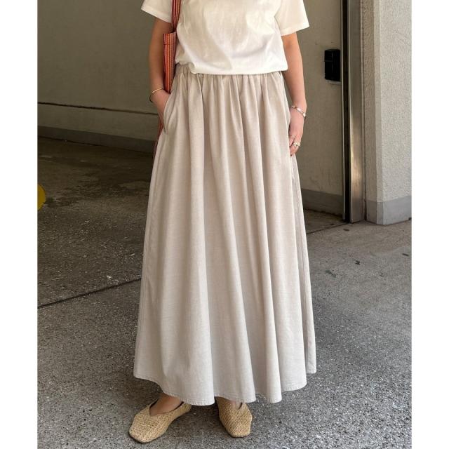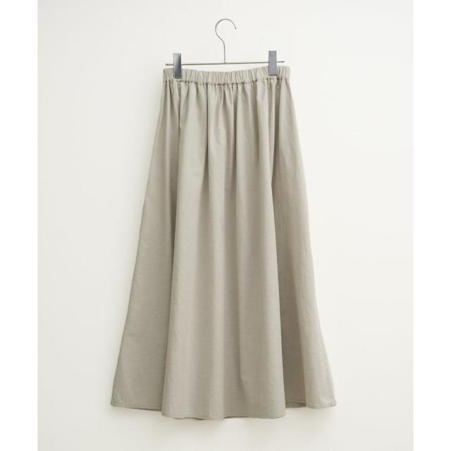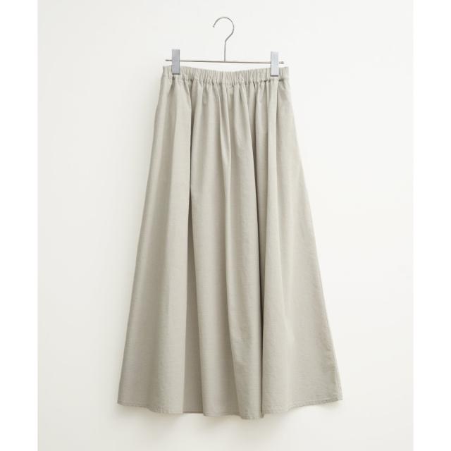 きれいなフレアシルエットが特徴のコットンシャンブレーギャザースカート。