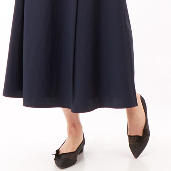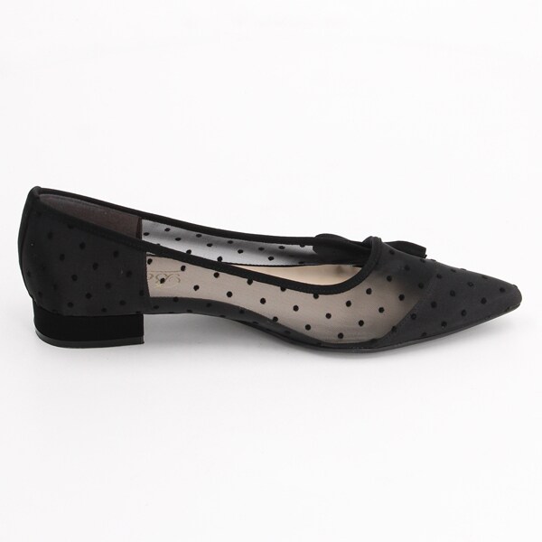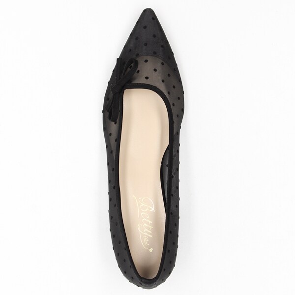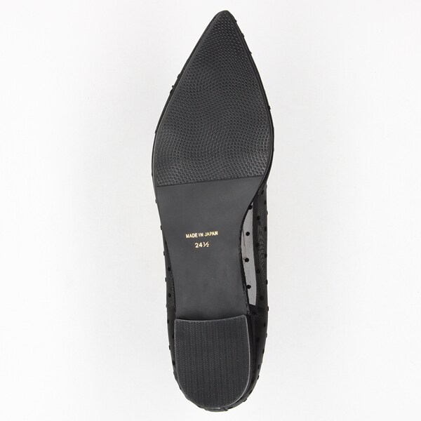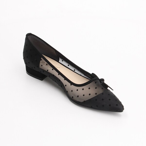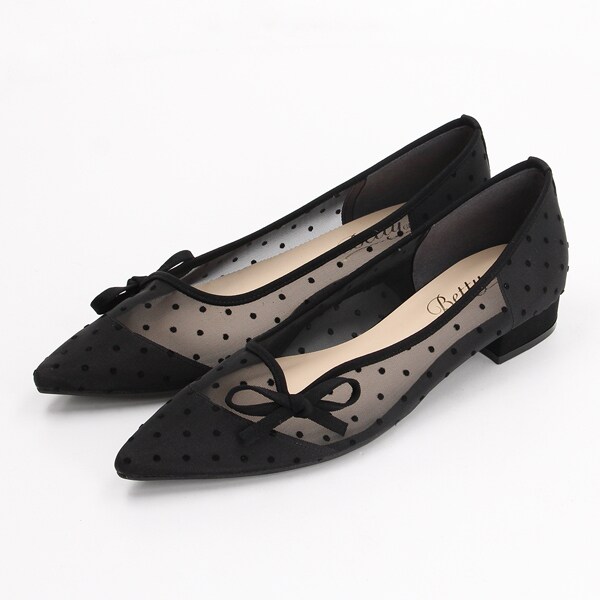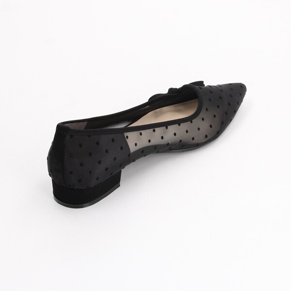 透け感のあるチュール素材にドット柄が可愛いフラットパンプス。