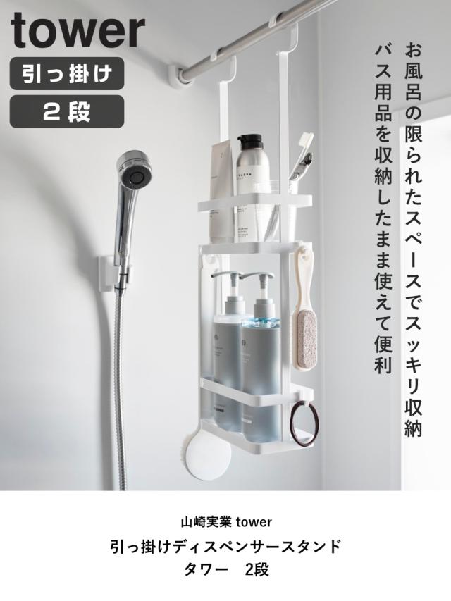 山崎実業 tower 引っ掛けディスペンサースタンド タワー 2段 ( 4903208084604 タワーシリーズ 引っ掛け ディスペンサースタンド 2段スタンド 吊り下げ つり下げディスペンサースタンド お風呂収納 フック付き )
