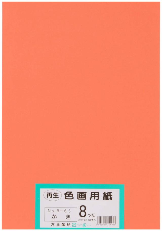 大王製紙 画用紙 再生 色画用紙 八ツ切サイズ 100枚入 かき(柿)