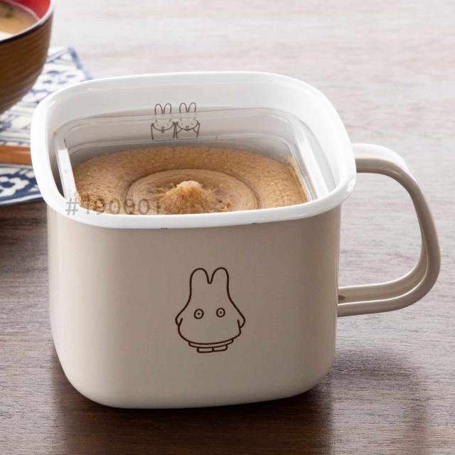 保存容器 角型 みそポット 1.5L ミッフィー ホーロー ( miffy 富士ホーロー 密閉 琺瑯 味噌ポット オーブン対応 IH対応 ガス対応 味噌入れ ストッカー 食品保存 片手鍋 琺瑯容器 ほうろう 蓋 おしゃれ かわいい 1500ml )